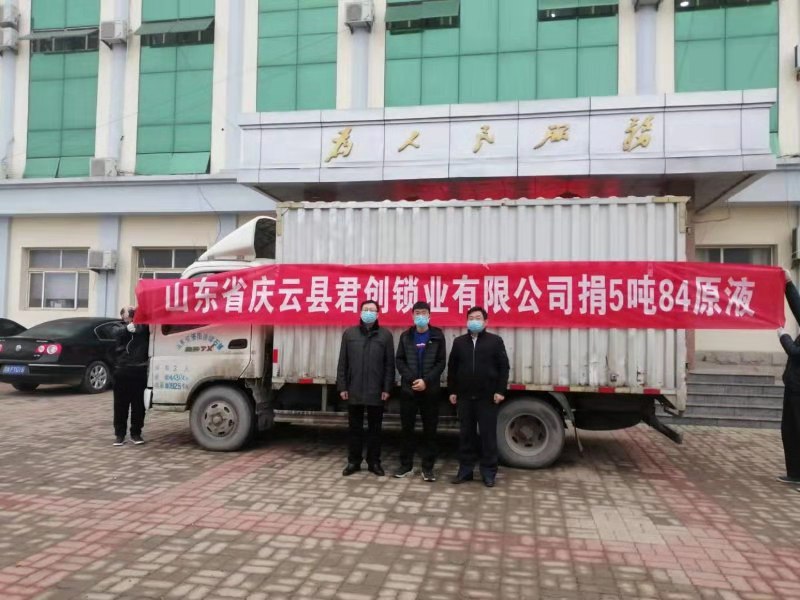 截至目前為止,新型肺炎疫情的局勢(shì)已經(jīng)較嚴(yán)峻。疫病無情,人有情,為了與國(guó)家共同度過難關(guān),于2月7日,山東省慶云縣君創(chuàng)鎖業(yè)有限公司為抗擊新型肺炎捐助5噸84原液。緊急支援,為堅(jiān)決打贏疫情提供了綿薄之力!眾志成城,共戰(zhàn)疫情!這是一場(chǎng)沒有硝煙的人民戰(zhàn)爭(zhēng),但我們有能力,也有信心,終將會(huì)取得勝利!