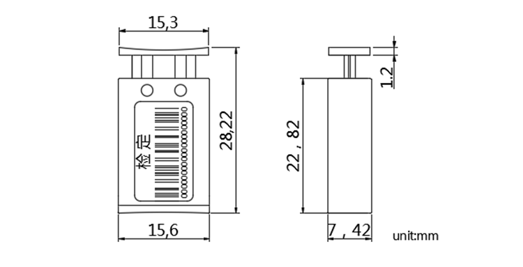 封印采用穿孔按壓式施封方式完成自鎖緊操作后,除非破壞封體,否則無法抽出封線或取出插件