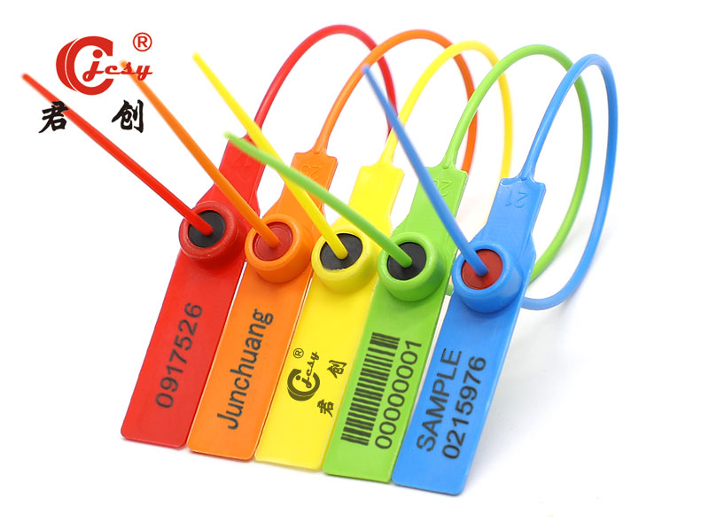 采用改性PP料注塑成型,鎖芯里部放置彈簧鋼片、再通過焊接而成。字為燙印或激光標刻、 公司標志或名稱、流水編碼、條形碼等,一拉緊型、易施封、易安裝,鎖后可用鋼絲剪移除。